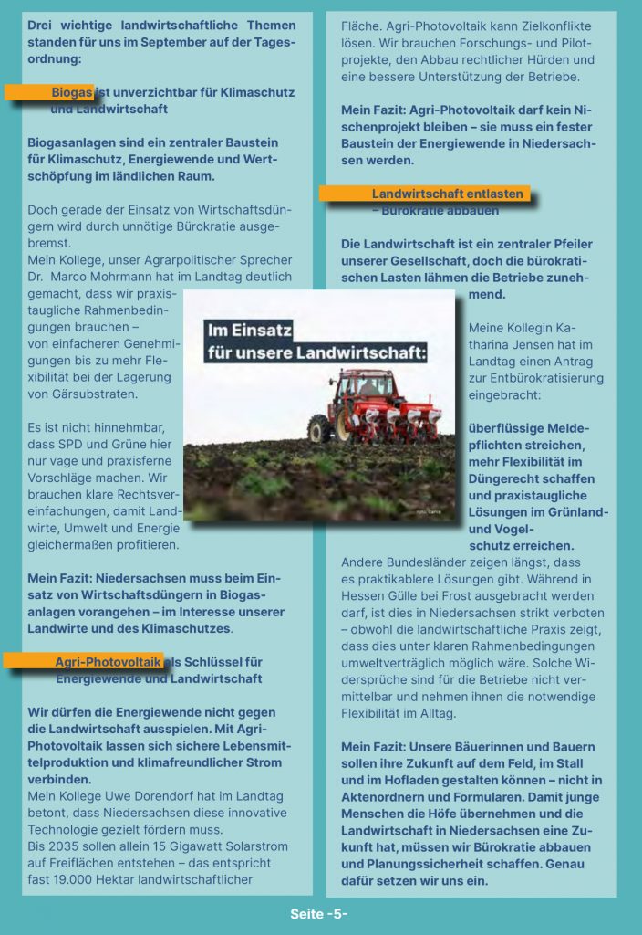 - Landwirtschaft entlasten & Energiewende praxisnah gestalten